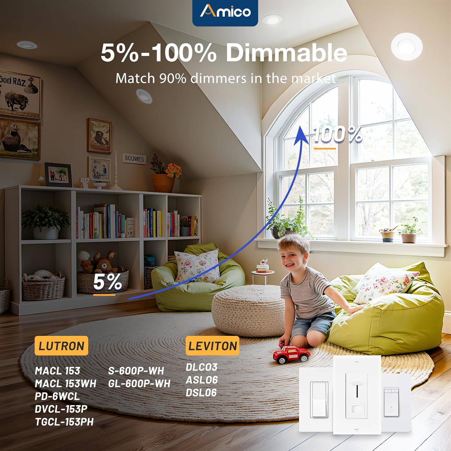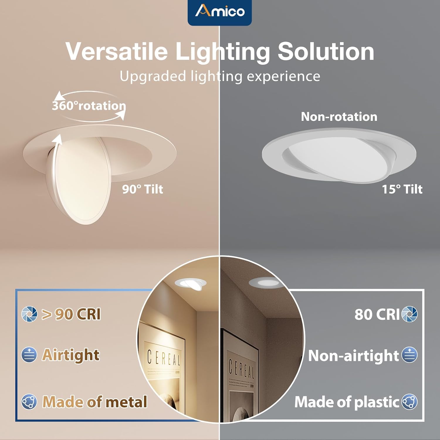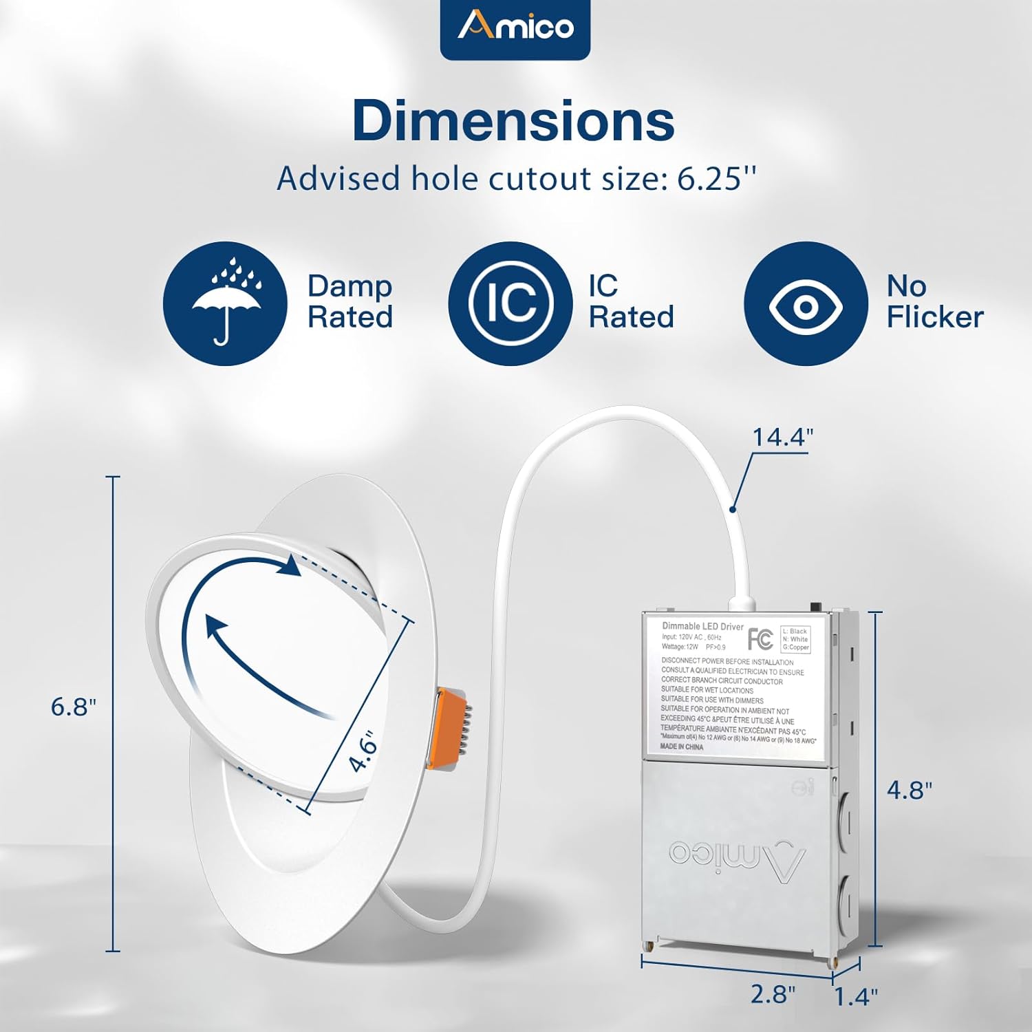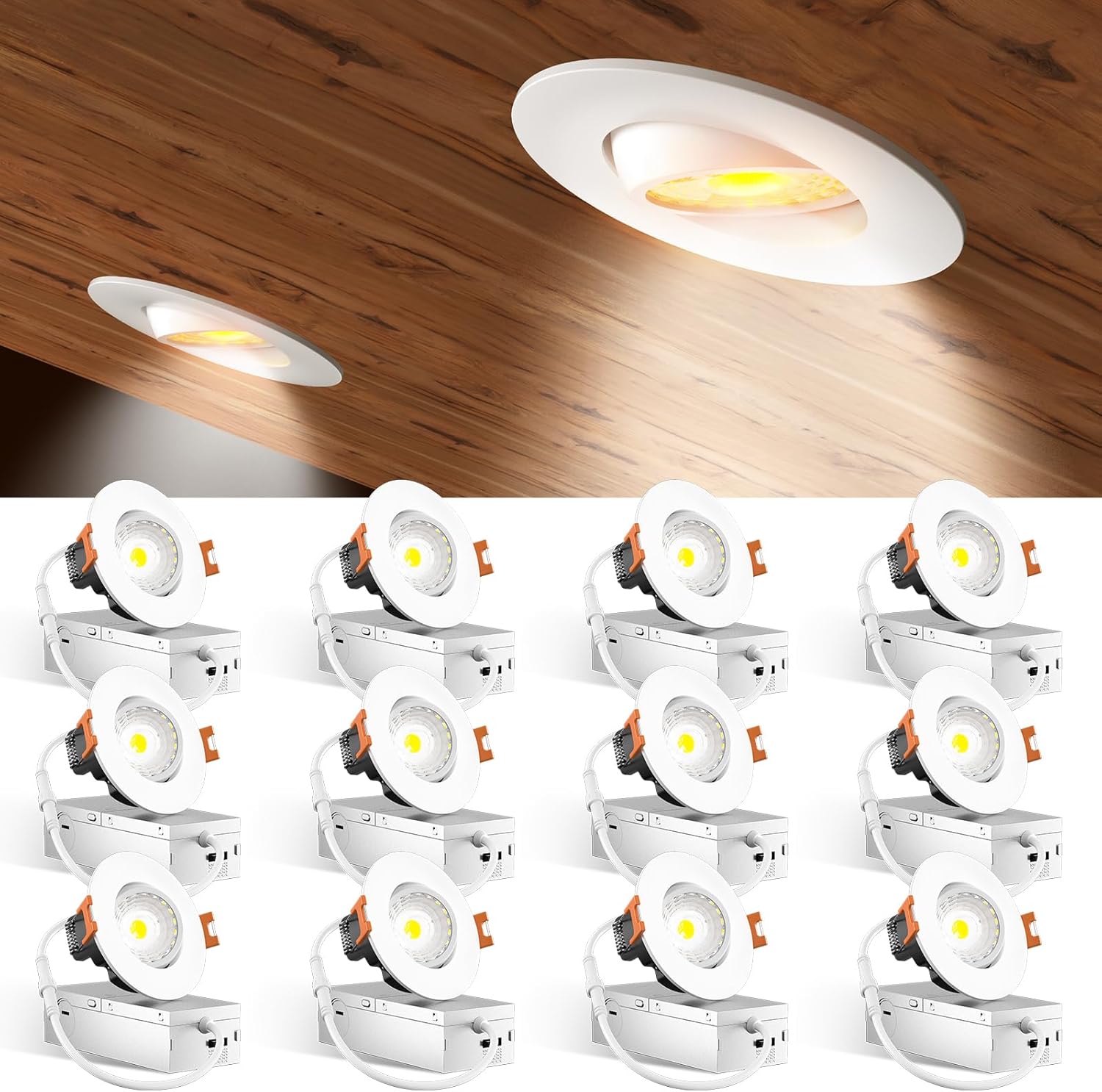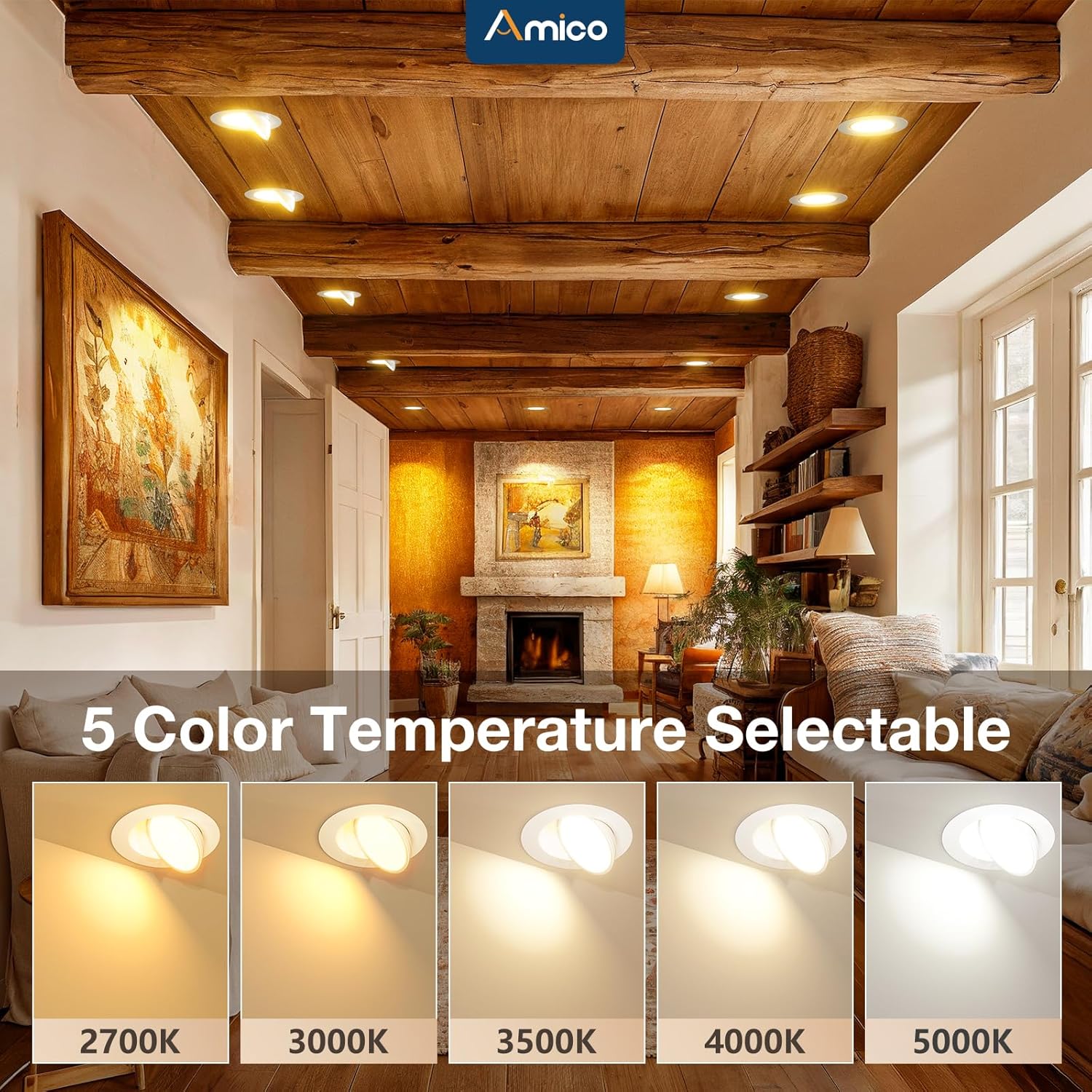 Amico 12 Pack 6 Inch 5CCT Gimbal LED Recessed Lighting, 360°&90°Adjustable Eyeball Directional Downlight, Dimmable, 2700K/3000K/3500K/4000K/5000K Selectable, 12W 1200LM CRI90+, White, ETL&FCC