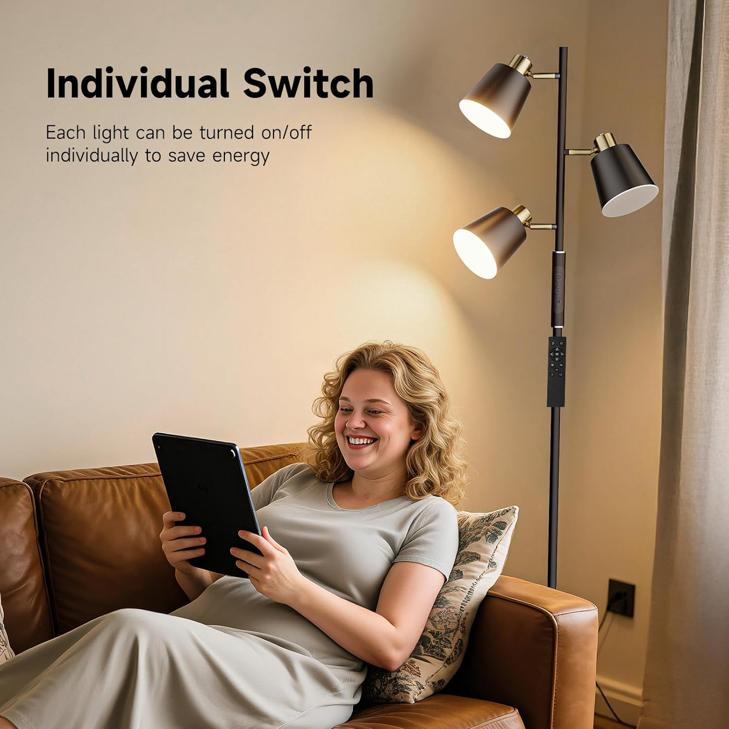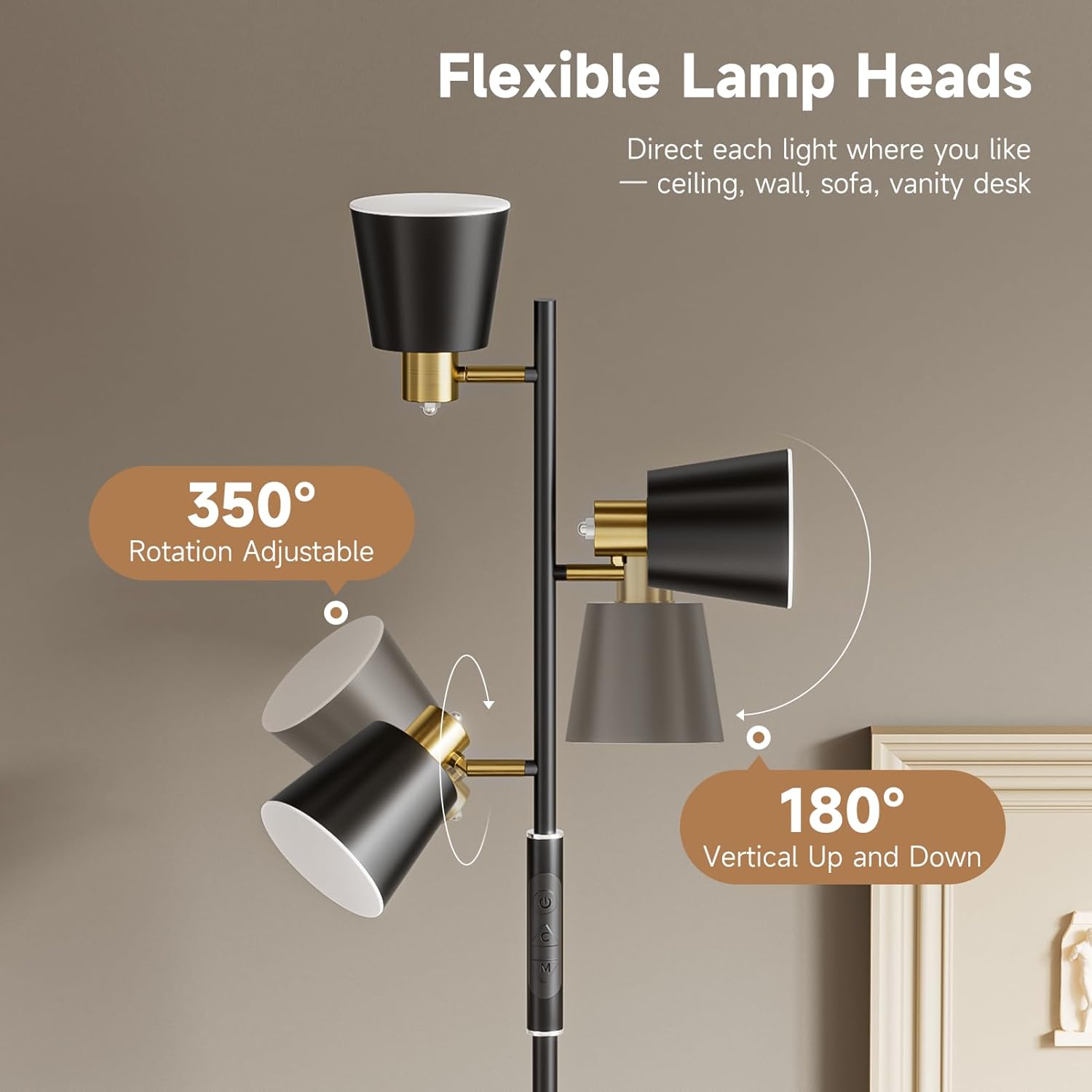 LED Tree Floor Lamp, 2500LM Super Bright Standing Lamp with Remote & Touch Control, 4 Color Temperatures, 3 Rotatable Lights, Modern Dimmable Floor Lamps for Living Room Bedroom Office