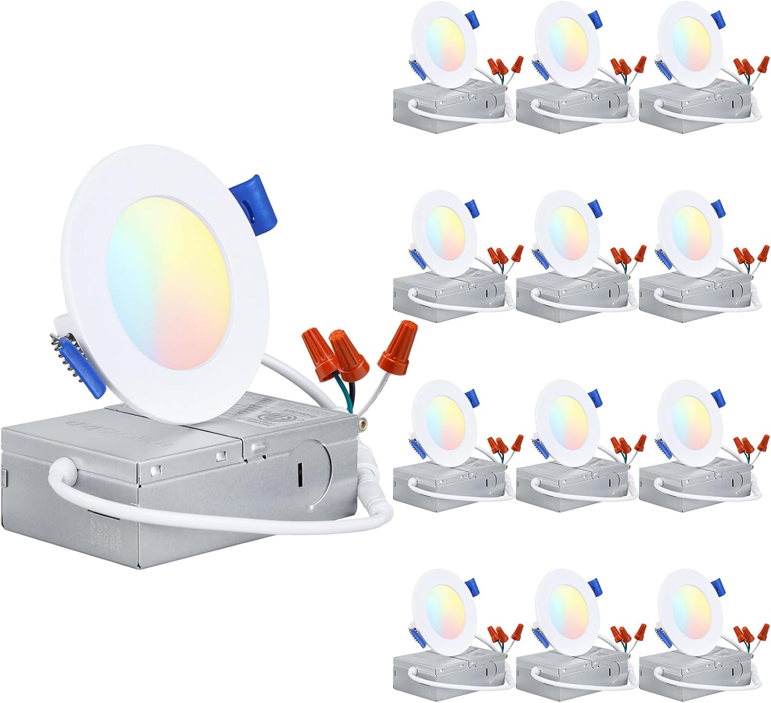TORCHSTAR Basic Series 12-Pack 6 Inch Ultra-Thin LED Recessed Lighting with Junction Box, CRI90, Aluminum, 5000K Daylight, 5%-100% Dimmable Slim Recessed Downlight, 12W 1100LM, ETL and Energy Star