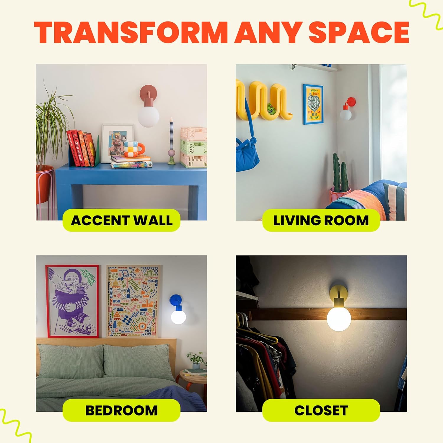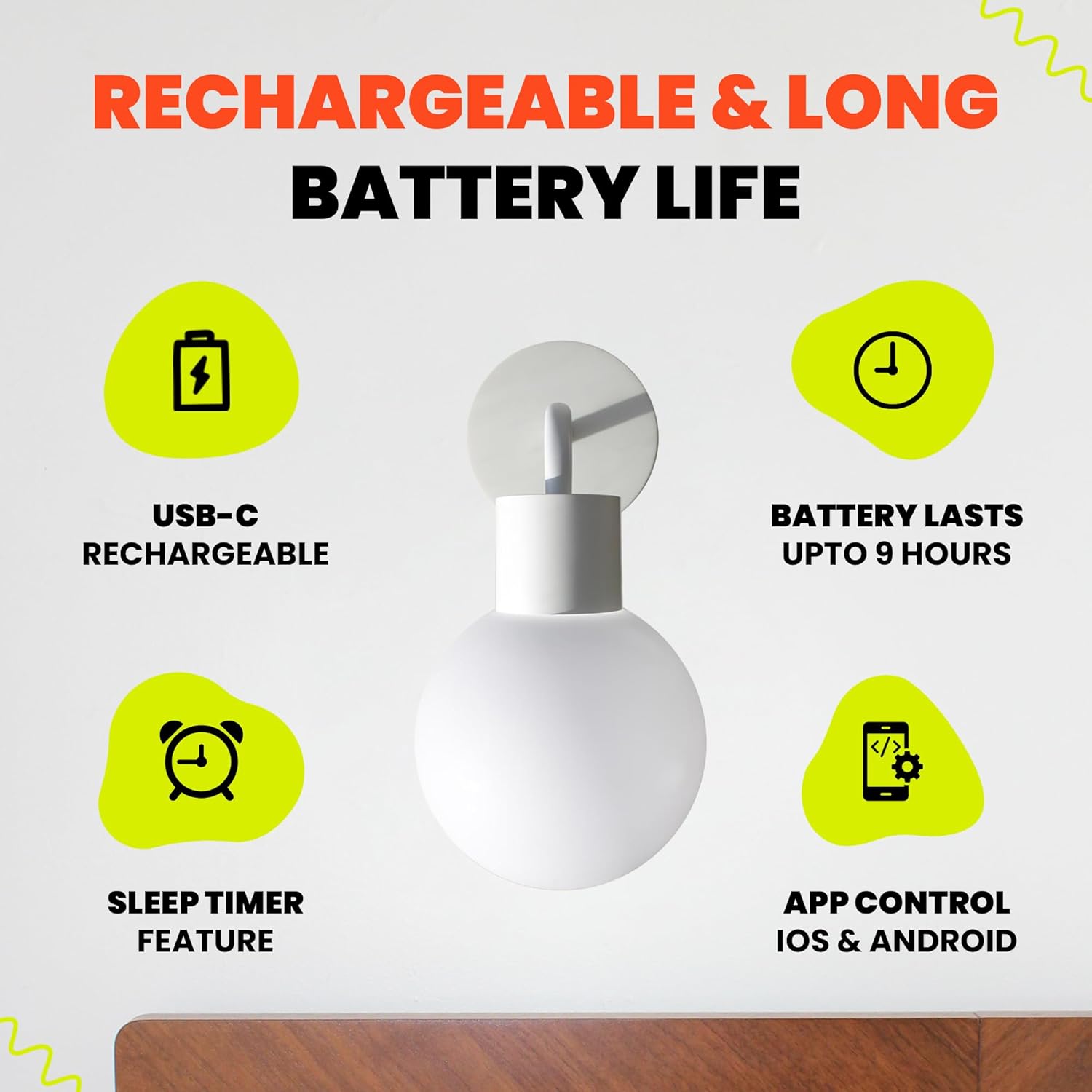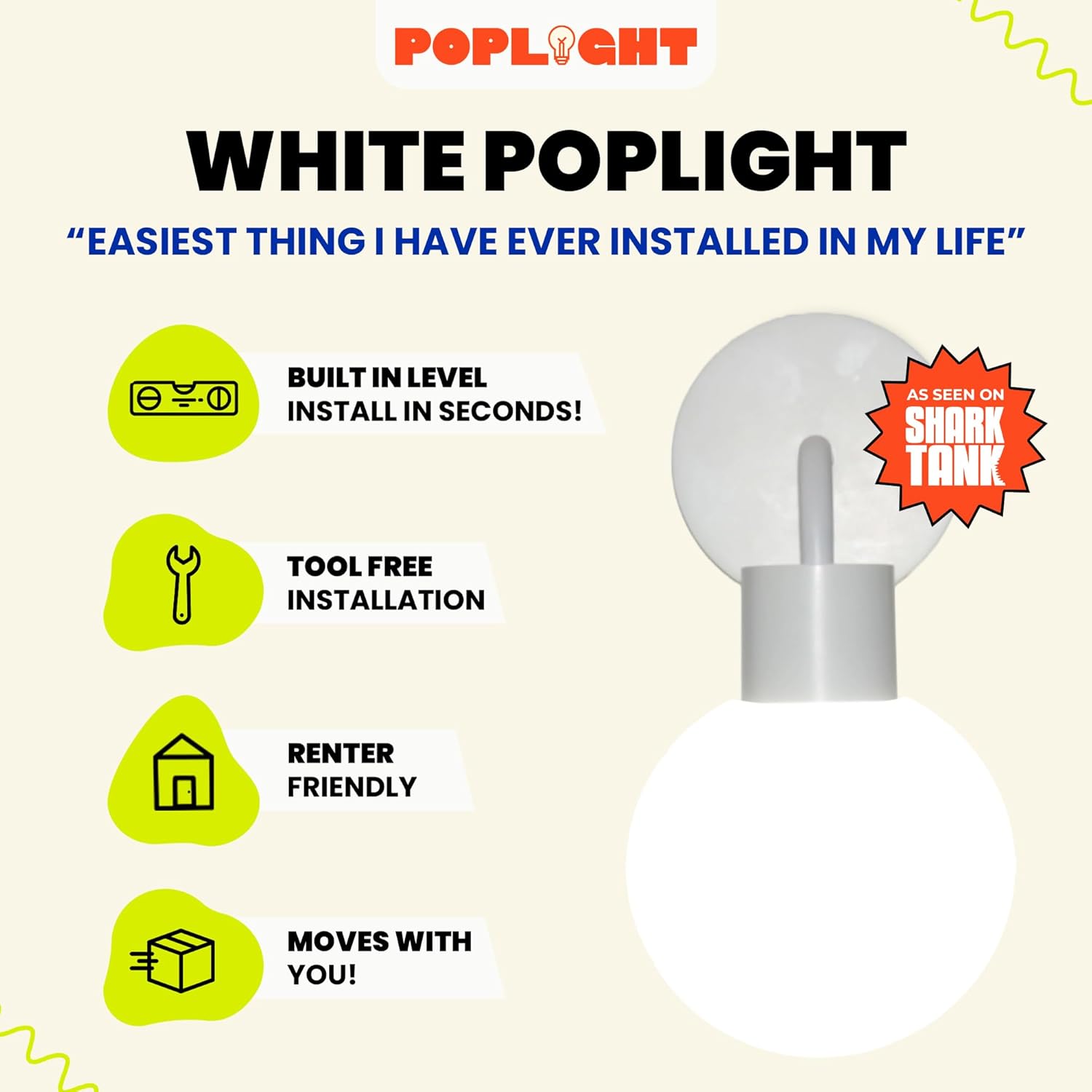 Wireless Wall Sconce (Shark Tank) Rechargeable & Dimmable LED Light w/App Control & Damage-Free Install, Moveable Modern Ambient Lighting for Elegant Home & Bedroom Decor | Popwhite